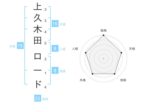 上久木田 ロードさんを姓名の画数から五運を鑑定