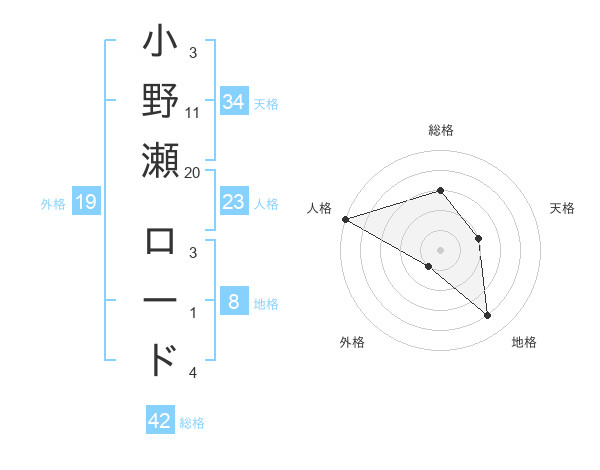 小野瀬 ロードさんを姓名の画数から五運を鑑定