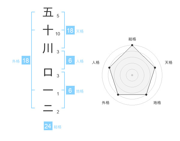 五十川 ローニさんを姓名の画数から五運を鑑定