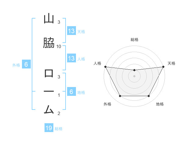 山脇 ロームさんを姓名の画数から五運を鑑定