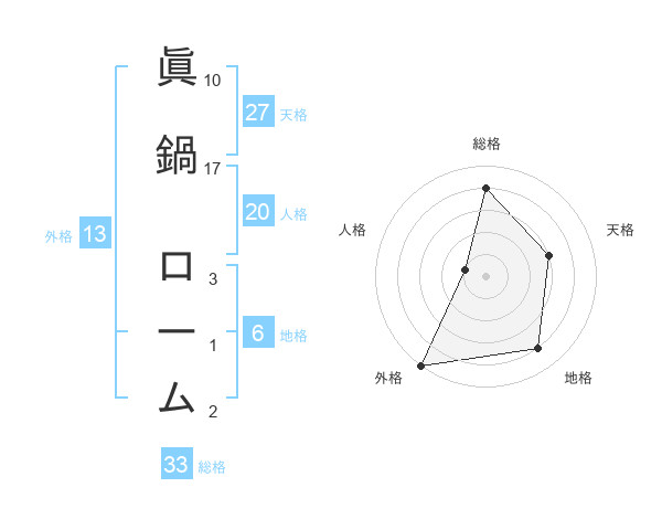 眞鍋 ロームさんの外格は13画の5点!