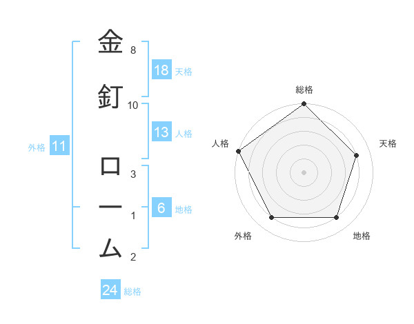 金釘 ロームさんを姓名の画数から五運を鑑定