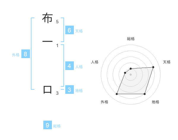 布一 ロさんの総格は9画の1点!