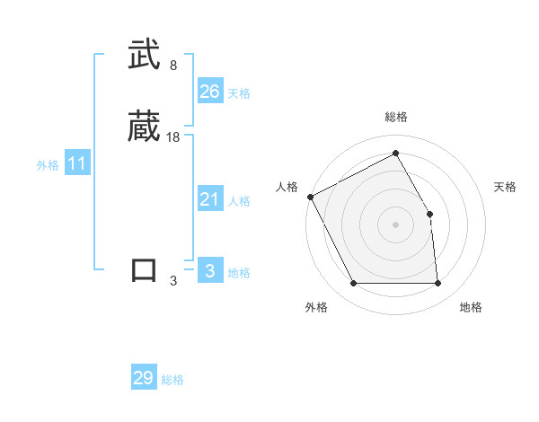武蔵 ロさんの総格は29画の4点!