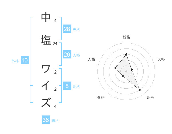 中塩 ワイズさんの地格は8画の4点!