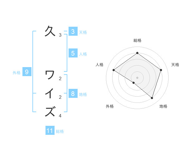 久 ワイズさんの総格は11画の4点!