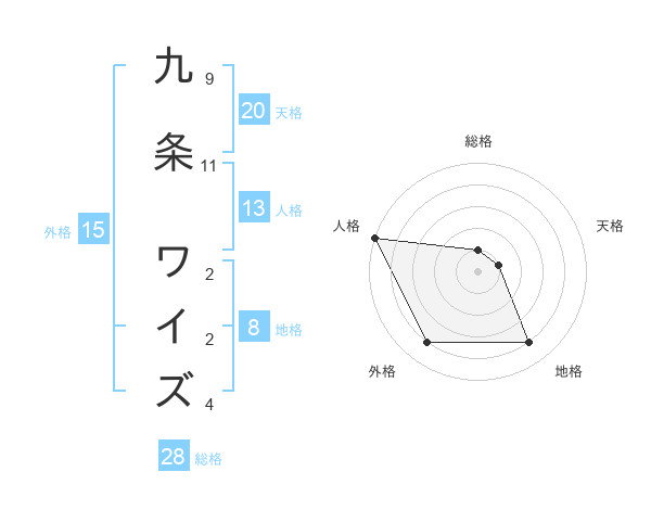 九条 ワイズさんの外格は15画の4点!