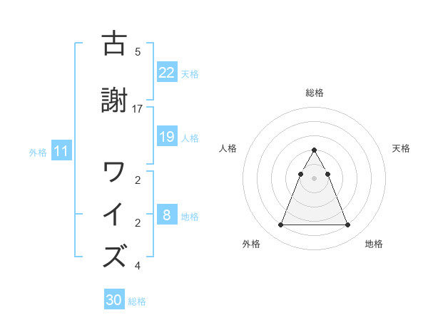 古謝 ワイズさんを姓名の画数から五運を鑑定
