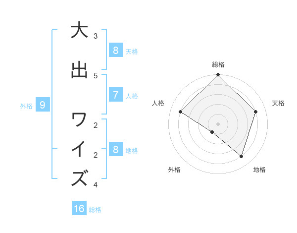大出 ワイズさんの総格は16画の5点!