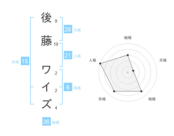 後藤 ワイズさんを姓名の画数から五運を鑑定