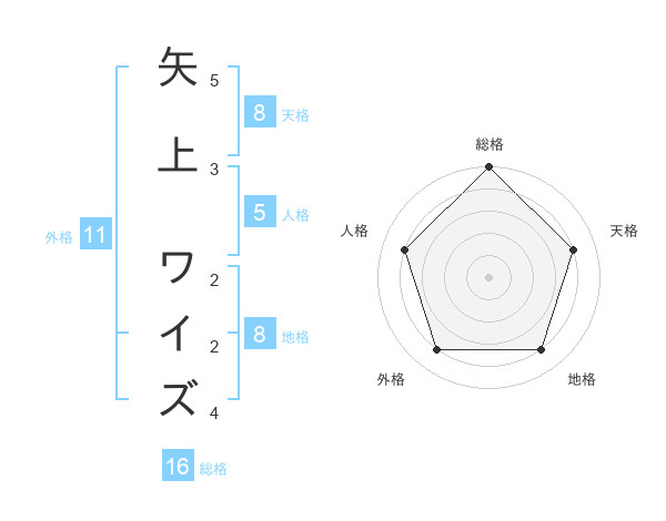 矢上 ワイズさんの総格は16画の5点!