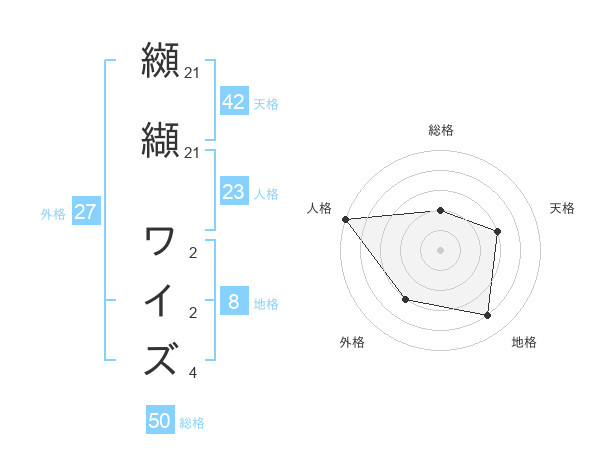 纐纈 ワイズさんの総格は50画の2点!