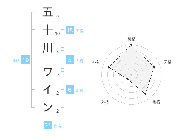 五十川 ワインさんを姓名の画数から五運を鑑定