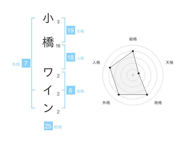 小橋 ワインさんの総格は25画の4点!