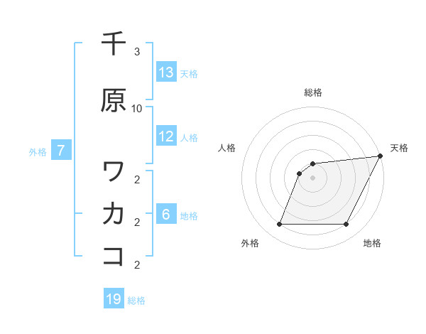千原 ワカコさんを姓名の画数から五運を鑑定