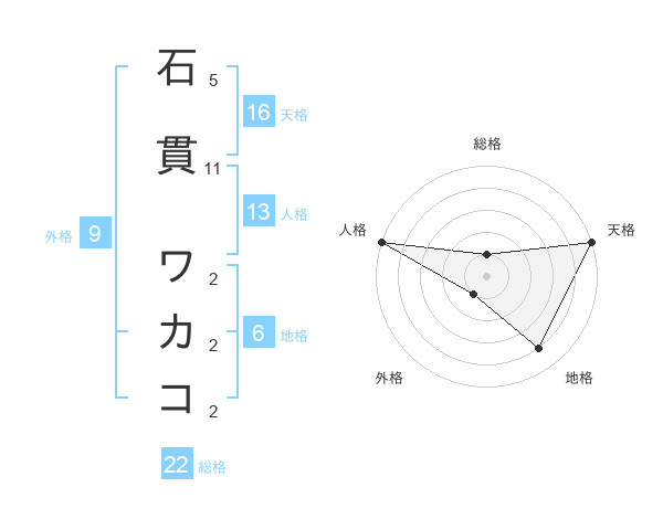 石貫 ワカコさんを姓名の画数から五運を鑑定