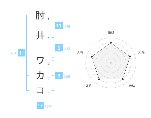 肘井 ワカコさんを姓名の画数から五運を鑑定