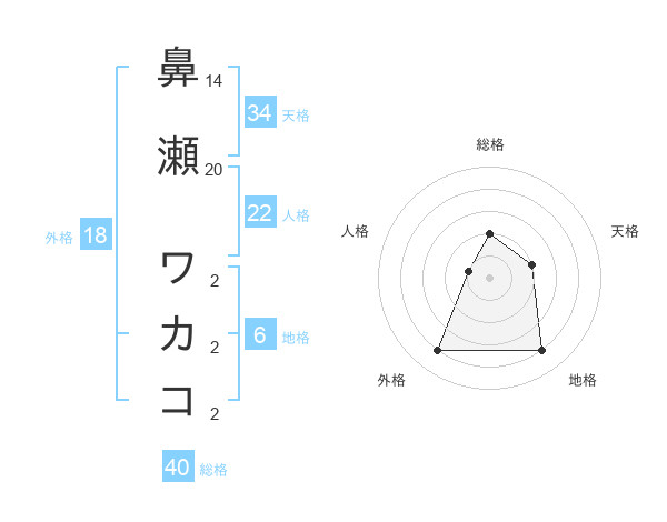 鼻瀬 ワカコさんの天格は34画の2点!