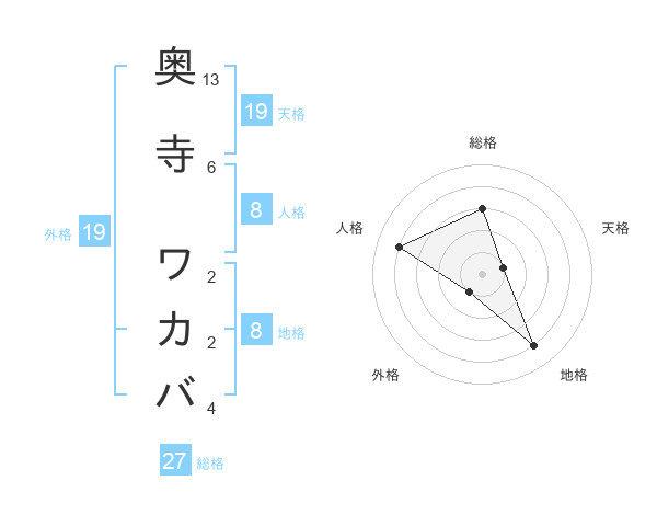 奥寺 ワカバさんの天格は19画の1点!