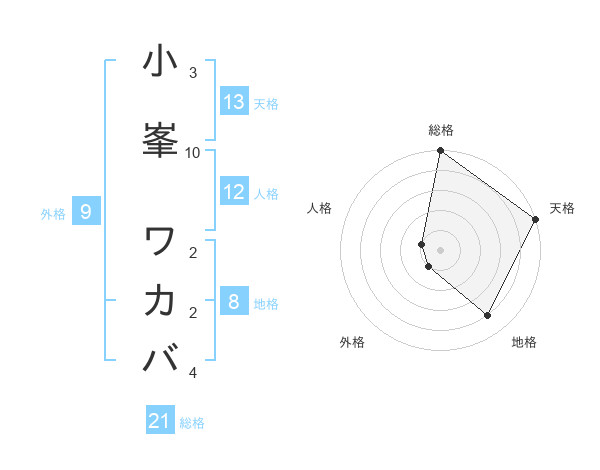 小峯 ワカバさんの天格は13画の5点!