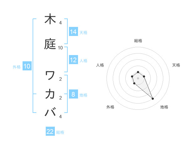 木庭 ワカバさんを姓名の画数から五運を鑑定