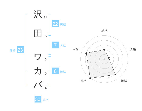 沢田 ワカバさんの外格は23画の5点!