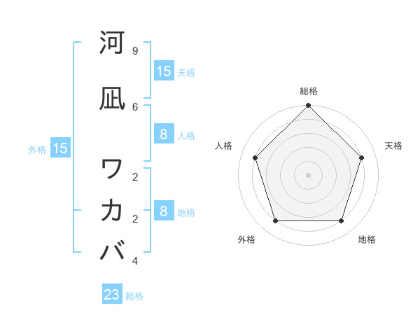 河凪 ワカバさんを姓名の画数から五運を鑑定