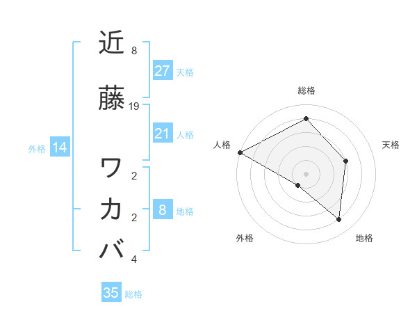 近藤 ワカバさんを姓名の画数から五運を鑑定