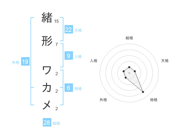 緒形 ワカメさんの地格は6画の4点!