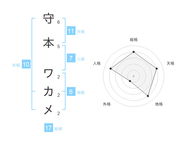 守本 ワカメさんを姓名の画数から五運を鑑定