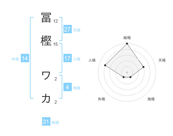 冨樫 ワカさんの総格は31画の5点!