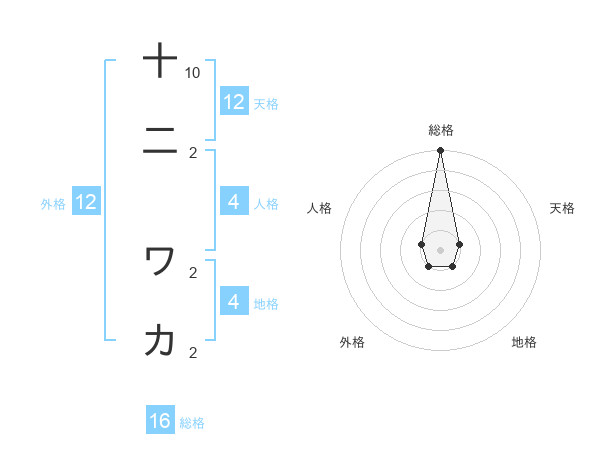 十二 ワカさんの総格は16画の5点!
