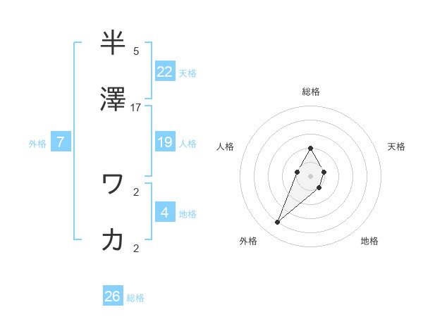 半澤 ワカさんの外格は7画の4点!