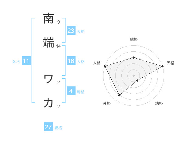 南端 ワカさんの天格は23画の5点!