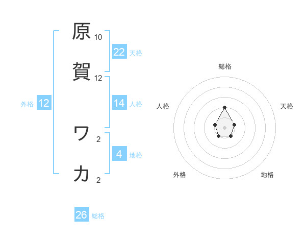 原賀 ワカさんの天格は22画の1点!