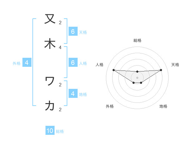 又木 ワカさんの天格は6画の4点!