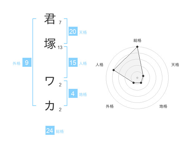 君塚 ワカさんを姓名の画数から五運を鑑定