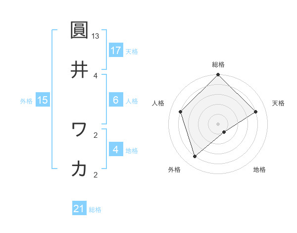 圓井 ワカさんの天格は17画の4点!