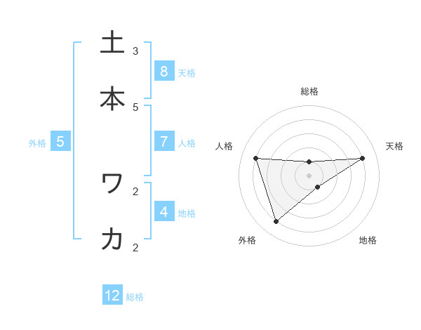 土本 ワカさんの総格は12画の1点!
