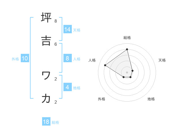 坪吉 ワカさんの総格は18画の4点!