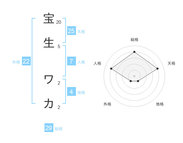 宝生 ワカさんを姓名の画数から五運を鑑定