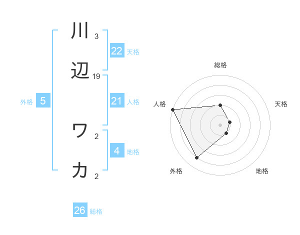 川辺 ワカさんの外格は5画の4点!