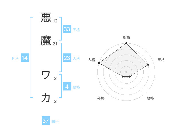 悪魔 ワカさんを姓名の画数から五運を鑑定