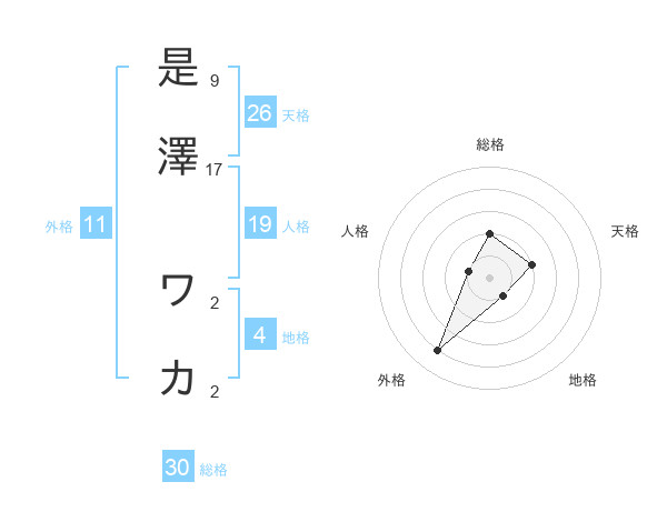 是澤 ワカさんの外格は11画の4点!