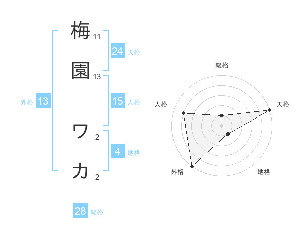 梅園 ワカさんを姓名の画数から五運を鑑定