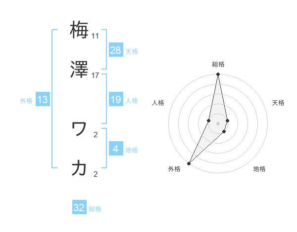 梅澤 ワカさんの総格は32画の5点!