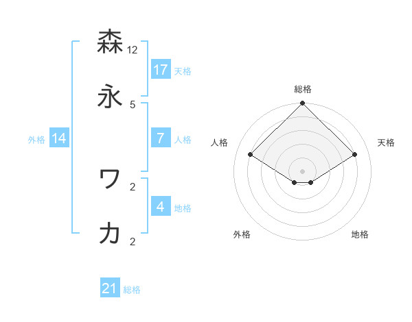 森永 ワカさんの総格は21画の5点!