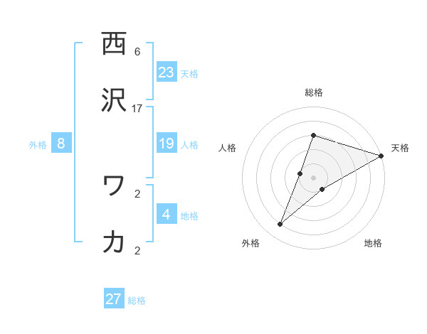 西沢 ワカさんの外格は8画の4点!