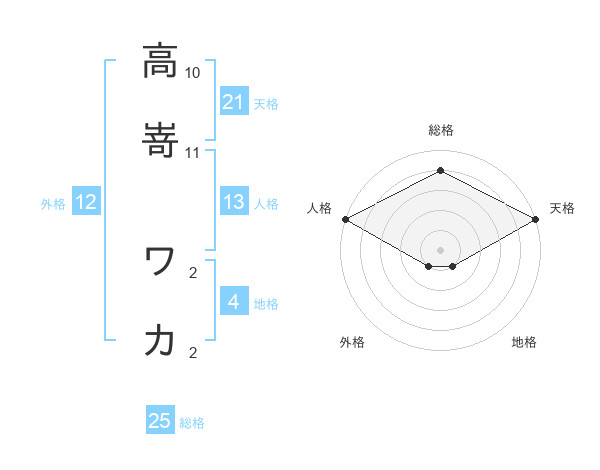 高嵜 ワカさんの天格は21画の5点!