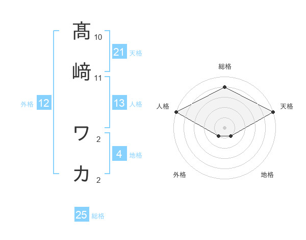 髙﨑 ワカさんの天格は21画の5点!